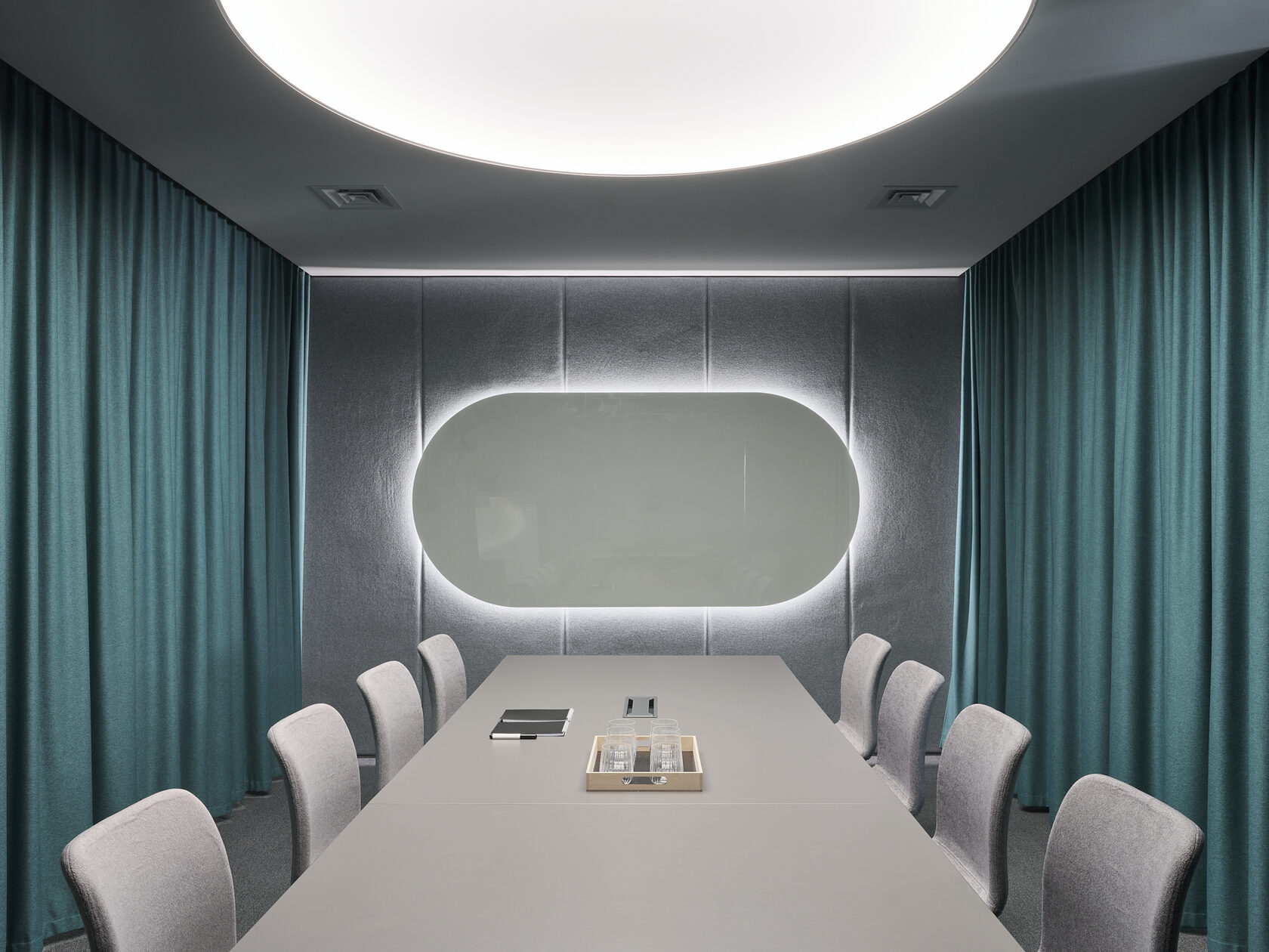 Офис представляет собой гибкое и эстетически привлекательное решение, которое отражает современные тренды за счет продуманного зонирования, натуральных материалов и графических приёмов.